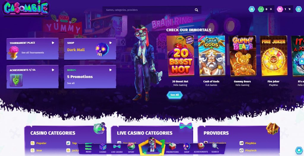 Sous ses airs déjantés, Casombie est une machine de guerre technologique. Le site est extrêmement rapide et propose une section « Réalisations » où vous gagnez des trophées en jouant, lesquels peuvent être échangés contre des bonus réels. La ludothèque est immense et constamment mise à jour avec les dernières nouveautés. C’est un casino qui ne se prend pas au sérieux dans sa forme, mais qui traite la sécurité et les paiements avec le plus grand professionnalisme. Un choix rafraîchissant pour ceux qui veulent s’amuser sans la rigidité des sites classiques.